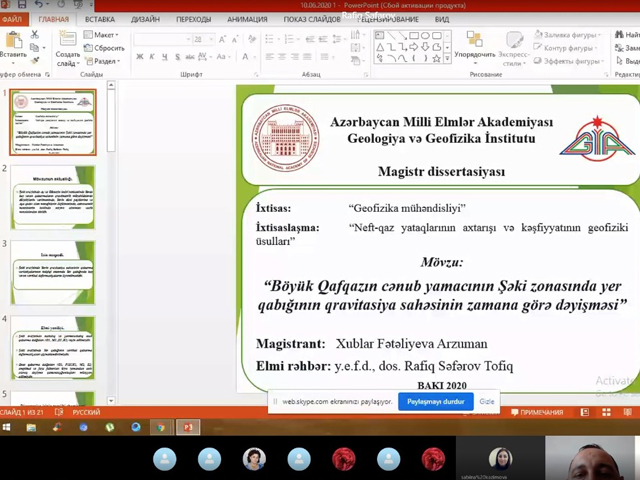 GGİ-də “YER FİZİKASI” SEKSİYASININ ONLİNE İCLASINDA MAGİSTR DİSSERTASİYA İŞİNİN İLKİN MÜZAKİRƏSİ KEÇIRILIB