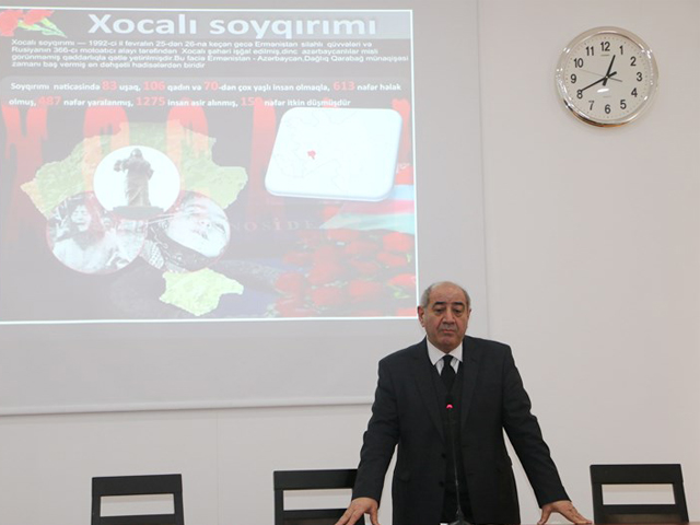 RSXM-nin baş direktoru AMEA - nın müxbir üzvü, professor Qurban Yetirmişli bildirib ki, Xocalı faciəsi iyirminci əsrdə törədilmiş insanlığa sığmayan ən dəhşətli faciələrdəndir. Erməni daşnaklarının iyirminci əsrin əvvəllərində də azərbaycanlılıra qarşı kütləvi qırğınlar törətdiklərini xatırladan baş direktor Xocalıda törədilən qətliamın bir xalqı, milləti məhv etmək məqsədi daşıdığını deyib. “Bu qırğında ermənilər qoca, qadın, uşaq demədən dinc insanları azərbaycanlı olduqlarına görə qətlə yetirdilər. Orada əsir götürülən insanlara olmazın işgəncələr verilib. 613 nəfər öldürüldü. 25 nəfər uşaq hər iki valideyinini itirdi. 1200-dən çox insan itkin düşdü”.