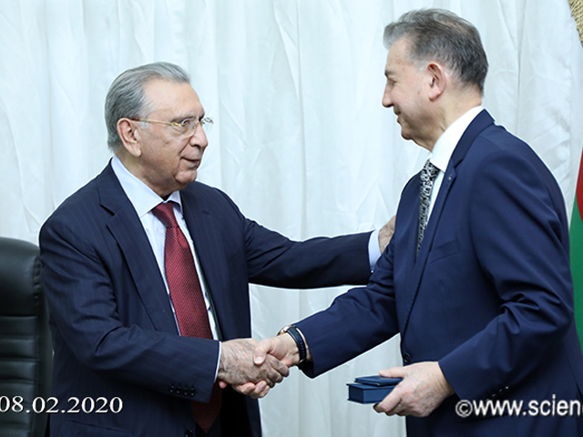 Əvvəlcə AMEA-nın prezidenti akademik Ramiz Mehdiyev Azərbaycan Respublikası Prezidentinin müvafiq Sərəncamları ilə təltif olunmuş – Gəncə Bölməsinin sədri, akademik Fuad Əliyev və Coğrafiya İnstitutunun direktoru, akademik Ramiz Məmmədova “Şöhrət” ordenlərini, “Bakı Dövlət Universitetinin 100 illiyi (1919-2019)” Azərbaycan Respublikasının yubiley medalı ilə təltif olunmuş – akademiklər Akif Əlizadə, Ramiz Məmmədov, Telman Əliyev, Nazim Məmmədov, Vaqif Fərzəliyev, Vaqif Abbasov, AMEA-nın müxbir üzvləri Qurban Yetirmişli, Misir Mərdanov, Oktay Qasımov, Oqtay Səmədov və Bəxtiyar Məmmədova yubiley medallarını təqdim edib.